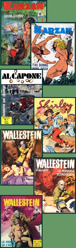 He drew (covers and/or pages) for well-known erotic fumetti series such as Zip e Jungla, Wallestein il mostro, Karzan (1975 to 1978), Goldrake, Al Capone, and Sexy Favole, which also found their way to France and were published by Elvifrance.