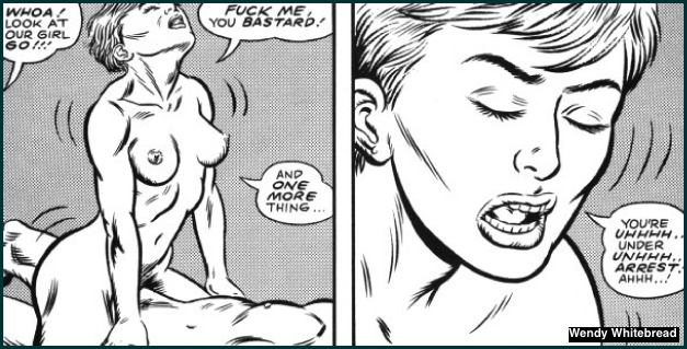 The stories themselves are rather shallow and take the porn comic cliché into account. Nevertheless, the idiosyncratic mix of horror, suspense, satire and sex is appealing. In terms of clarity, Drek shows everything! Distinct "male cumshots scenes"; with similarities to Nicky's works. The "sex per page rate" is extremely high in Wendy Whitebread and Forbidden Frankenstein.