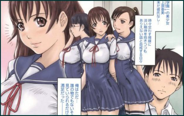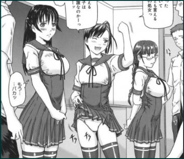 All points brought together, that is: schoolgirls, narrow and full-breasted, in uniforms, swimsuits and/or sportswear, brothers and sisters who have romantic sex alone, as a couple, in threes or fours - and out come mangabands like Love Selection or Giri Giri Sisters. Most of the time,"justifiable" sexual acts with teenagers are mixed with incest love stories with even younger actors.