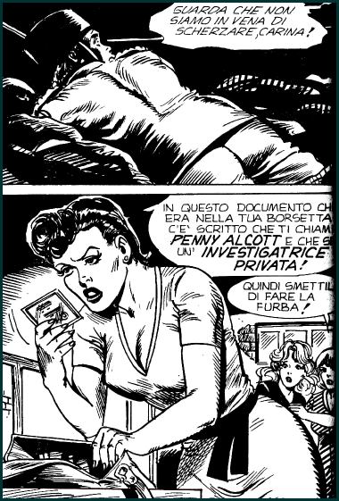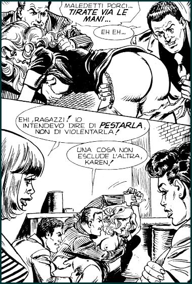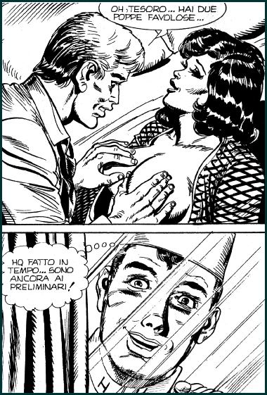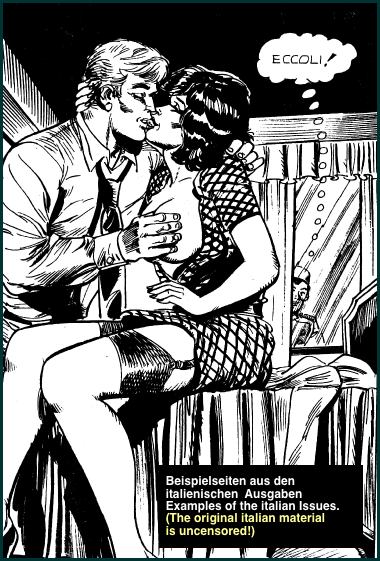 Ward L'Invisibile The Italian Fumetti series, published by Ediperiodici (the Condor label) from 1988 to 1989, was a kind of "superhero sequel series" for the team of author Carmelo Gozzo and illustrator Piercarlo Macchi, following the successful series PIG. Luciano Milano from the "Staff di if" studio was once again responsible for the ink drawings. The series was published in France almost simultaneously with the Italian original. Unfortunately, after seven adventures, it came to an end. The announced eighth issue, "Una vergine in pericolo", was published in early 1990 as a supplement to the "Segreti di donne" series. A ninth adventure, entitled "Delitto sessuale", appeared unnoticed as a supplement to the newly launched miniseries "Lucifera" at the end of 1992. The July 1989 issue of Ward L'Invisibile (#7) included a supplement called "L'amante osceno", which was illustrated by Augusto Chizzoli. However, it does not feature an adventure with Ward. In addition to the comparatively weak title of the series and Ward's "ordinary" sex-and-crime adventures, which failed to captivate readers, there were also visual "flaws" that did not do the series any favours. Piercarlo Macchi's drawings and Luciano Milano's ink drawings no longer reached the standard of the "PIG" series. It is possible that production pressure was very high, leaving the creative team with insufficient time to work on individual pages. In the series Ward L'Invisibile, readers are introduced to Ward, a hotel bellhop. Working at the elegant Garden Hotel in Los Angeles, the main protagonist can't resist stalking couples who check in, displaying true voyeuristic tendencies. Even the "accident" that renders him invisible does not change his personality. Before and after his transformation, he remains an ordinary, horny voyeur. Over the course of nine issues, there is little evidence of any character development. In the first issue, which serves as the origin story for the Invisible Ward, he crosses paths with the private investigator Penny Alcott. She is spying on hotel guests while disguised as a chambermaid. But not for her own amusement. Penny is pursuing a quartet of villains who have learned that a man named Professor Laughridge has invented a new weapon. The quartet has decided to steal it. The two female members of the quartet, Karen and Cynthia, hide the invention in a large wardrobe trunk but have no idea how it works. In order to find out, the two women send their henchmen, Murdoch and Burt, to the scientist's house. When Laughridge refuses to hand over the plans, the henchmen begin to abuse him. However, they accidentally kill him before he can reveal anything about his invention. During a scuffle between Penny and Ward, they are both forced to take shelter in the suspect's room. Unfortunately, Ward chooses the laundry basket where the experimental invention is stored, while Penny chooses a wardrobe. When Cynthia later finds Penny, she assumes that Laughridge sent her to retrieve the invention. Therefore, she must also know how to operate it. To extract this information from the private investigator without interruption, the gang decides to take her and the laundry basket to their hideout, an old shed. Karen orders her men to "interrogate" Penny as brutally as they did Laughridge. However, the henchmen declare that they want to have some fun with the victim first. Meanwhile, Ward realises that he has become invisible. After repeatedly raping Penny, the criminals decide to continue the interrogation more brutally. Then the gang's client, the ruthless Zietlow, arrives. He informs them that the invention is a prototype that emits dangerous radiation, which "explains" Ward's "spontaneous" transformation. While trying to help Penny, invisible Ward climbs out of the suitcase and manipulates Murdoch's arm, causing him to hit Karen instead of Penny. Ward continues to confuse the criminals until Karen and Cynthia find themselves caught up in a shootout with Murdoch and Burt. During the ensuing chaos, Ward unties Penny and escorts her to safety. Karen, a gang member, finally has had enough and tries to use the invention against the two henchmen. However, as it is an unstable prototype, the invention explodes, killing Karen, Cynthia, the henchmen and Zietlow, the client. (2) This first adventure brings Penny and Ward together as a team, and Ward uses his newfound ability to assist with subsequent investigations. After all, an invisible person can hide a surveillance camera at a suspect's house more quickly and efficiently than Penny ever could. However, the series is set in the mid-1980s, when cameras were still the size of a football. Consequently, every now and then, a supposedly "flying" camera is spotted on the streets of Los Angeles. Following his first adventure, Ward remains invisible. However, this life-changing fact is not explored in depth, and Ward is condemned by the author to live as Penny's henchman and notorious voyeur. An interesting Easter egg appears in the sixth adventure. It turns out that Penny is an accomplished comic book artist who draws for the horror and torture series "Oltretomba" (from Ediperiodici). While this has no real connection to the "Ward L'Invisibile" stories themselves, it is an unusual interlude in an ongoing series. Macchi worked on this series in the early 1980s. In her seventh adventure, Penny is visited by an old friend named Lisbeth. However, Lisbeth wants to blackmail Penny with a fake sex tape in order to start a business together. To achieve this, Lisbeth intends to record the tape in a private apartment. But Lisbeth didn't count on an invisible partner. Penny quickly discovers where the recording device is hidden and manipulates it. The two women and Ward have a lot of fun producing the supposed blackmail video. Later, however, Lisbeth is murdered by her crazy boyfriend, and Penny is initially suspected of being the murderer. He lies in wait for her in her office and tortures her b