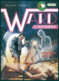 Ward L'Invisibile Die italienische Fumetti-Serie erschien von 1988 bis 1989 bei Ediperiodici (dem Label mit dem Condor-Logo) und war nach der erfolgreichen Serie PIG eine Art "Superhelden-Nachfolgeserie" für das Team aus Autor Carmelo Gozzo und Zeichner Piercarlo Macchi. Für die Tusche war erneut Luciano Milano vom Studio "Staff di if" verantwortlich. In Frankreich lief die Serie fast zeitgleich zum italienischen Original. Nach sieben Abenteuern war jedoch leider wieder Schluss. Die angekündigte Ausgabe #8 "Una vergine in pericolo" wurde Anfang 1990 als Beilage/Supplement der Serie "Segreti di donne" veröffentlicht. Ein neuntes Abenteuer mit dem Titel "Delitto sessuale" erschien unbeachtet als Beilage/Supplement der neu gestarteten Miniserie "Lucifera" Ende 1992. Für die Ausgabe "Ward L'Invisibile" #7 (Juli 1989) gab es eine Beilage namens "L'amante osceno", die von Augusto Chizzoli gezeichnet wurde. Sie beinhaltet jedoch kein Abenteuer mit Ward. Neben dem vergleichsweise schwachen Titel der Reihe oder den "gewöhnlichen" Sex-and-Crime-Abenteuern von Ward, die die Leser nicht ausreichend fesseln konnten, waren es auch optische "Mängel", die der Serie nicht gut taten. Die Zeichnungen von Piercarlo Macchi und die Tuschzeichnungen von Luciano Milano erreichten nicht mehr das Niveau der Serie "PIG". Möglicherweise war der Produktionsdruck sehr hoch und ließ den Kreativen nicht genügend Zeit, um länger an einzelnen Seiten zu arbeiten. In der Serie Ward L'Invisibile wird dem Leser der Hotelpage Ward vorgestellt. Als Angestellter im eleganten Garden Hotel in Los Angeles lässt es sich der Hauptprotagonist nicht nehmen eingecheckten Paaren in solider Spanner-Manier nachzustellen. Selbst der "Unfall", der ihn unsichtbar werden lässt, verändert seine Persönlichkeit nicht. Er bleibt vor und nach der Verwandlung ein gewöhnlicher, notgeiler Spanner. In neun langen Ausgaben war scheinbar keine Charakterentwicklung möglich. In der ersten Ausgabe, sozusagen der "Origin-Story" des unsichtbaren Ward, stolpert dieser über die Privatdetektivin Penny Alcott. Sie bespitzelt in der Tarnung als Zimmermädchen ebenfalls Hotelgäste. Doch nicht zu ihrem Vergnügen. Penny verfolgt ein schurkisches Quartett, das erfahren hat, dass ein Mann namens Professor Laughridge eine vermeintlich neue Waffe erfunden hat. Das Quartett hat beschlossen, diese zu stehlen. Die beiden weiblichen Protagonistinnen des Quartetts, Karen und Cynthia, verstecken diese Erfindung in einem großen Kleiderkoffer, haben jedoch keine Ahnung, wie sie funktioniert. Um dies herauszufinden, schicken die beiden Damen ihre Handlanger Murdoch und Burt zum Haus des Wissenschaftlers. Als Laughridge sich weigert, die Pläne herauszugeben, beginnen die Handlanger, ihn zu misshandeln. Sie töten ihn jedoch versehentlich, bevor er etwas über seine Erfindung erzählen kann. Während eines Handgemenges zwischen Penny und Ward werden beide gezwungen, im Zimmer der Verdächtigen Schutz zu suchen und sich zu verstecken. Ward wählt unglücklicherweise den Wäschekoffer, in dem die experimentelle Erfindung deponiert ist, und Alcott einen Kleiderschrank. Als Cynthia später Penny entdeckt, schließt sie daraus, dass Laughridge sie geschickt haben muss, um die Erfindung zurückzuholen. Daher muss sie auch wissen, wie man sie bedient. Um dies ungestört aus der Privatschnüfflerin herauszupressen, beschließt die Bande, sowohl den Wäschekoffer als auch die Ermittlerin in ihr Versteck, einen alten Schuppen, zu bringen. Karen befiehlt ihren Männern, Penny genauso brutal zu "verhören" wie Laughridge. Die Handlanger erklären jedoch, dass sie sich zuerst mit dem Opfer vergnügen wollen. Währenddessen entdeckt Ward, dass er unsichtbar geworden ist. Nach der mehrmaligen Vergewaltigung von Penny beschließen die Verbrecher, das Verhör etwas brutaler fortzusetzen. Dann trifft auch der Auftraggeber der Bande, der skrupellose Zietlow, ein. Er klärt die Verbrecher darüber auf, dass die Erfindung ein Prototyp ist, die gefährlich strahlt, was die "spontane" Verwandlung von Ward erklärt. Als er versucht, Penny zu helfen, klettert der unsichtbare Ward aus dem Koffer und manipuliert Murdochs Arm so, dass dieser Karen statt Penny schlägt. Mit weiteren Aktionen verwirrt Ward die Verbrecher, bis Karen und Cynthia sich plötzlich in einer Schießerei mit Murdoch und Burt wiederfinden. Während dieser Ablenkung bindet Ward Penny los und bringt sie in Sicherheit. Das Bandenmitglied Karen hat endlich genug und versucht, die Erfindung gegen die beiden Handlanger einzusetzen. Da es sich jedoch um einen instabilen Prototyp handelt, explodiert die Erfindung und tötet Karen, Cynthia, die Handlanger und den Auftraggeber Zietlow. (2) Dieses erste Abenteuer schweißt Penny und Ward zu einem Team zusammen und Ward hilft mit seiner neugewonnenen Fähigkeit bei den folgenden Ermittlungen. Schließlich kann ein Unsichtbarer eine Überwachungskamera bei einem Verdächtigen schneller und zügiger verstecken, als es Penny je könnte. Doch die Serie spielt Mitte der 1980er Jahre, als Kameras noch die Größe eines Fußballs hatten. So wird das ein oder andere Mal eine vermeintlich "fliegende" Kamera auf den Straßen von Los Angeles gesichtet. Nach seinem ersten Abenteuer bleibt Ward im unsichtbaren Zustand. Diese lebensverändernde Tatsache wird jedoch nicht tiefgründig thematisiert, sodass Ward (von Autor) dazu verdammt ist, als Pennys Handlanger und notorischer Spanner zu leben. Im sechsten Abenteuer gibt es ein interessantes Easter Egg. Dabei entpuppt sich Penny als versierte Comic-Zeichnerin, die für die Serie „Oltretomba” (eine Grusel-, Horror- und Folter-Serie aus dem Hause Ediperiodici) zeichnet. Dies hat keinen wirklichen Bezug zu den "Ward L’Invisibile"-Geschichten selbst, stellt jedoch einen ungewöhnlichen Einschub in einer laufenden Serie dar. Macchi hat Anfang der 1980er Jahre für einige Ausgaben für diese Serie gezeichnet. In ihrem siebten Abenteuer wir