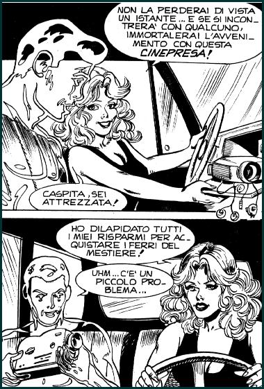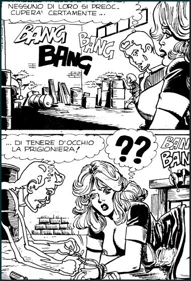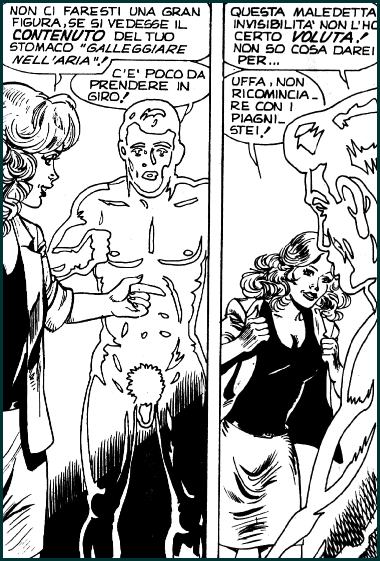 Ward L'Invisibile The Italian Fumetti series, published by Ediperiodici (the Condor label) from 1988 to 1989, was a kind of "superhero sequel series" for the team of author Carmelo Gozzo and illustrator Piercarlo Macchi, following the successful series PIG. Luciano Milano from the "Staff di if" studio was once again responsible for the ink drawings. The series was published in France almost simultaneously with the Italian original. Unfortunately, after seven adventures, it came to an end. The announced eighth issue, "Una vergine in pericolo", was published in early 1990 as a supplement to the "Segreti di donne" series. A ninth adventure, entitled "Delitto sessuale", appeared unnoticed as a supplement to the newly launched miniseries "Lucifera" at the end of 1992. The July 1989 issue of Ward L'Invisibile (#7) included a supplement called "L'amante osceno", which was illustrated by Augusto Chizzoli. However, it does not feature an adventure with Ward. In addition to the comparatively weak title of the series and Ward's "ordinary" sex-and-crime adventures, which failed to captivate readers, there were also visual "flaws" that did not do the series any favours. Piercarlo Macchi's drawings and Luciano Milano's ink drawings no longer reached the standard of the "PIG" series. It is possible that production pressure was very high, leaving the creative team with insufficient time to work on individual pages. In the series Ward L'Invisibile, readers are introduced to Ward, a hotel bellhop. Working at the elegant Garden Hotel in Los Angeles, the main protagonist can't resist stalking couples who check in, displaying true voyeuristic tendencies. Even the "accident" that renders him invisible does not change his personality. Before and after his transformation, he remains an ordinary, horny voyeur. Over the course of nine issues, there is little evidence of any character development. In the first issue, which serves as the origin story for the Invisible Ward, he crosses paths with the private investigator Penny Alcott. She is spying on hotel guests while disguised as a chambermaid. But not for her own amusement. Penny is pursuing a quartet of villains who have learned that a man named Professor Laughridge has invented a new weapon. The quartet has decided to steal it. The two female members of the quartet, Karen and Cynthia, hide the invention in a large wardrobe trunk but have no idea how it works. In order to find out, the two women send their henchmen, Murdoch and Burt, to the scientist's house. When Laughridge refuses to hand over the plans, the henchmen begin to abuse him. However, they accidentally kill him before he can reveal anything about his invention. During a scuffle between Penny and Ward, they are both forced to take shelter in the suspect's room. Unfortunately, Ward chooses the laundry basket where the experimental invention is stored, while Penny chooses a wardrobe. When Cynthia later finds Penny, she assumes that Laughridge sent her to retrieve the invention. Therefore, she must also know how to operate it. To extract this information from the private investigator without interruption, the gang decides to take her and the laundry basket to their hideout, an old shed. Karen orders her men to "interrogate" Penny as brutally as they did Laughridge. However, the henchmen declare that they want to have some fun with the victim first. Meanwhile, Ward realises that he has become invisible. After repeatedly raping Penny, the criminals decide to continue the interrogation more brutally. Then the gang's client, the ruthless Zietlow, arrives. He informs them that the invention is a prototype that emits dangerous radiation, which "explains" Ward's "spontaneous" transformation. While trying to help Penny, invisible Ward climbs out of the suitcase and manipulates Murdoch's arm, causing him to hit Karen instead of Penny. Ward continues to confuse the criminals until Karen and Cynthia find themselves caught up in a shootout with Murdoch and Burt. During the ensuing chaos, Ward unties Penny and escorts her to safety. Karen, a gang member, finally has had enough and tries to use the invention against the two henchmen. However, as it is an unstable prototype, the invention explodes, killing Karen, Cynthia, the henchmen and Zietlow, the client. (2) This first adventure brings Penny and Ward together as a team, and Ward uses his newfound ability to assist with subsequent investigations. After all, an invisible person can hide a surveillance camera at a suspect's house more quickly and efficiently than Penny ever could. However, the series is set in the mid-1980s, when cameras were still the size of a football. Consequently, every now and then, a supposedly "flying" camera is spotted on the streets of Los Angeles. Following his first adventure, Ward remains invisible. However, this life-changing fact is not explored in depth, and Ward is condemned by the author to live as Penny's henchman and notorious voyeur. An interesting Easter egg appears in the sixth adventure. It turns out that Penny is an accomplished comic book artist who draws for the horror and torture series "Oltretomba" (from Ediperiodici). While this has no real connection to the "Ward L'Invisibile" stories themselves, it is an unusual interlude in an ongoing series. Macchi worked on this series in the early 1980s. In her seventh adventure, Penny is visited by an old friend named Lisbeth. However, Lisbeth wants to blackmail Penny with a fake sex tape in order to start a business together. To achieve this, Lisbeth intends to record the tape in a private apartment. But Lisbeth didn't count on an invisible partner. Penny quickly discovers where the recording device is hidden and manipulates it. The two women and Ward have a lot of fun producing the supposed blackmail video. Later, however, Lisbeth is murdered by her crazy boyfriend, and Penny is initially suspected of being the murderer. He lies in wait for her in her office and tortures her b